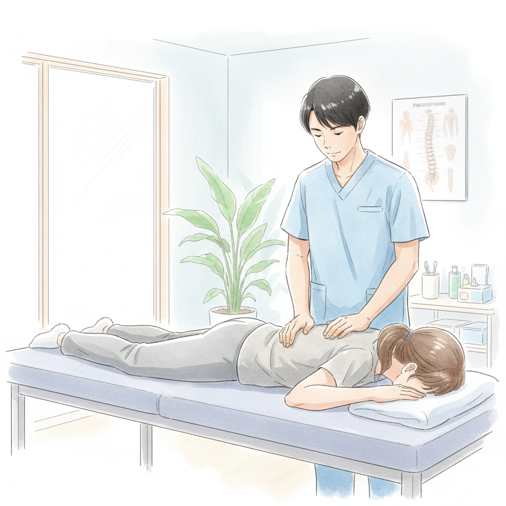 腰への直接的な施術はほとんど行わず、主に胸椎と腹横筋へのアプローチで改善したケースです。